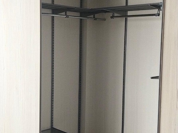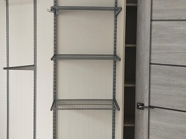 Для внутреннего наполнения выбрали: металлическую гардеробную систему ARISTO в цвете металлик.