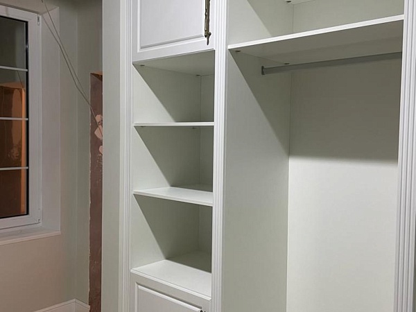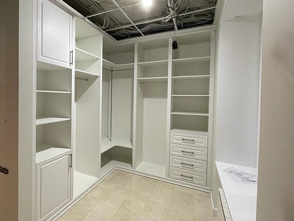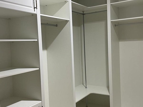 Для проекта гардеробной комнаты клиент выбрал классическую мебель серии YVOIRE (Ивуар).