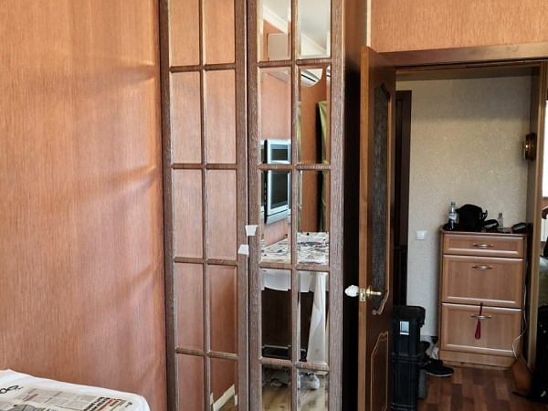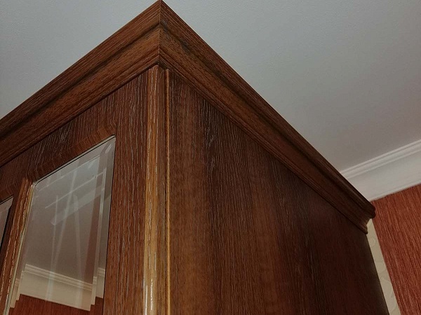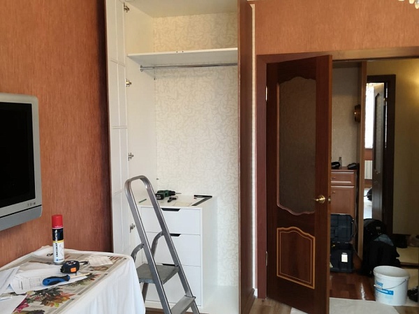 Встроенный шкаф без задней стенки цвета Патина Орех 73, цвет нестандартный, Марине Ч. нужен был именно такой. Внутри шкаф белый, с выдвижными ящиками. Есть место для хранения и в интерьере поддерживается классический стиль.
