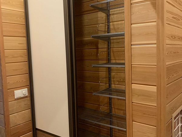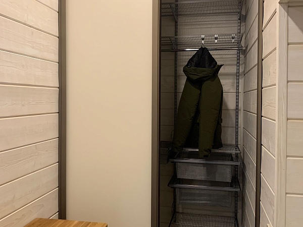Гардеробная с сетчатым наполнением в нише, баня.