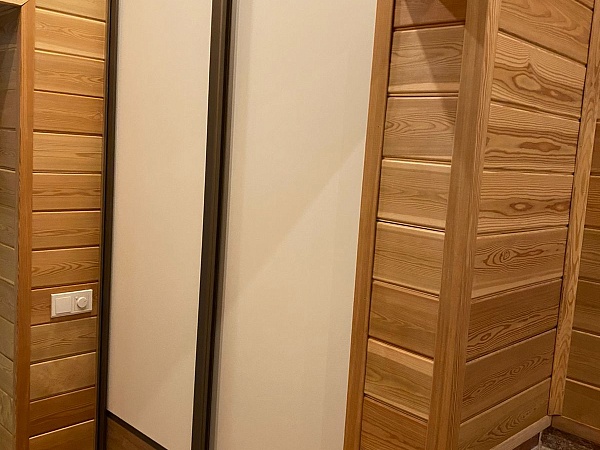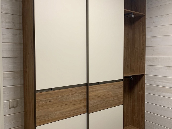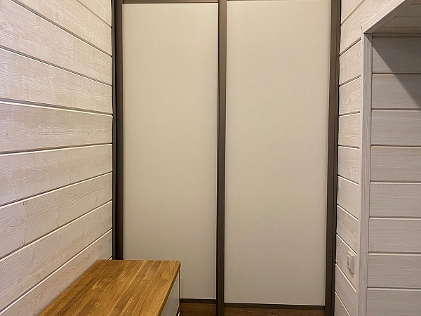 Дополнили конструкцию дверями-купе в профиле О, цвет профиля – Шампань матовая.