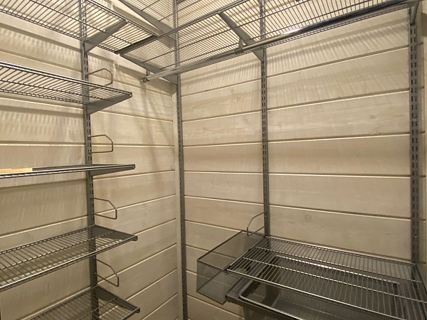 Для организации хранения в бане выбрали металлическую Гардеробную систему ARISTO. Система хранения устойчива к коррозии и влаги за счёт порошковой окраски. А сетчатые полки обеспечивают отличный обзор и вентиляцию.