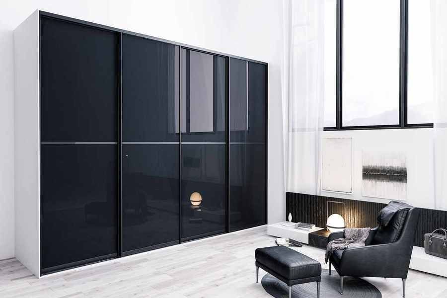 Черный цвет в интерьере — символ аристократичности и роскоши. Он вне моды и времени, главное правильно его дозировать и совмещать. Большой встроенный шкаф с черными фасадами выглядит в высшей степени элегантно, абсолютно не давит, а наоборот стирает границы и словно уходит в бесконечность. Размещенный на белом фоне он смотрится еще выразительней, а черное стекло фасадов делает его загадочным и магически притягательным. Глянцевая поверхность стекла мягко отражает, увеличивает пространство, а зеркальные блики добавляют объема. Фурнитура из черного металла – идеально завершает композицию.