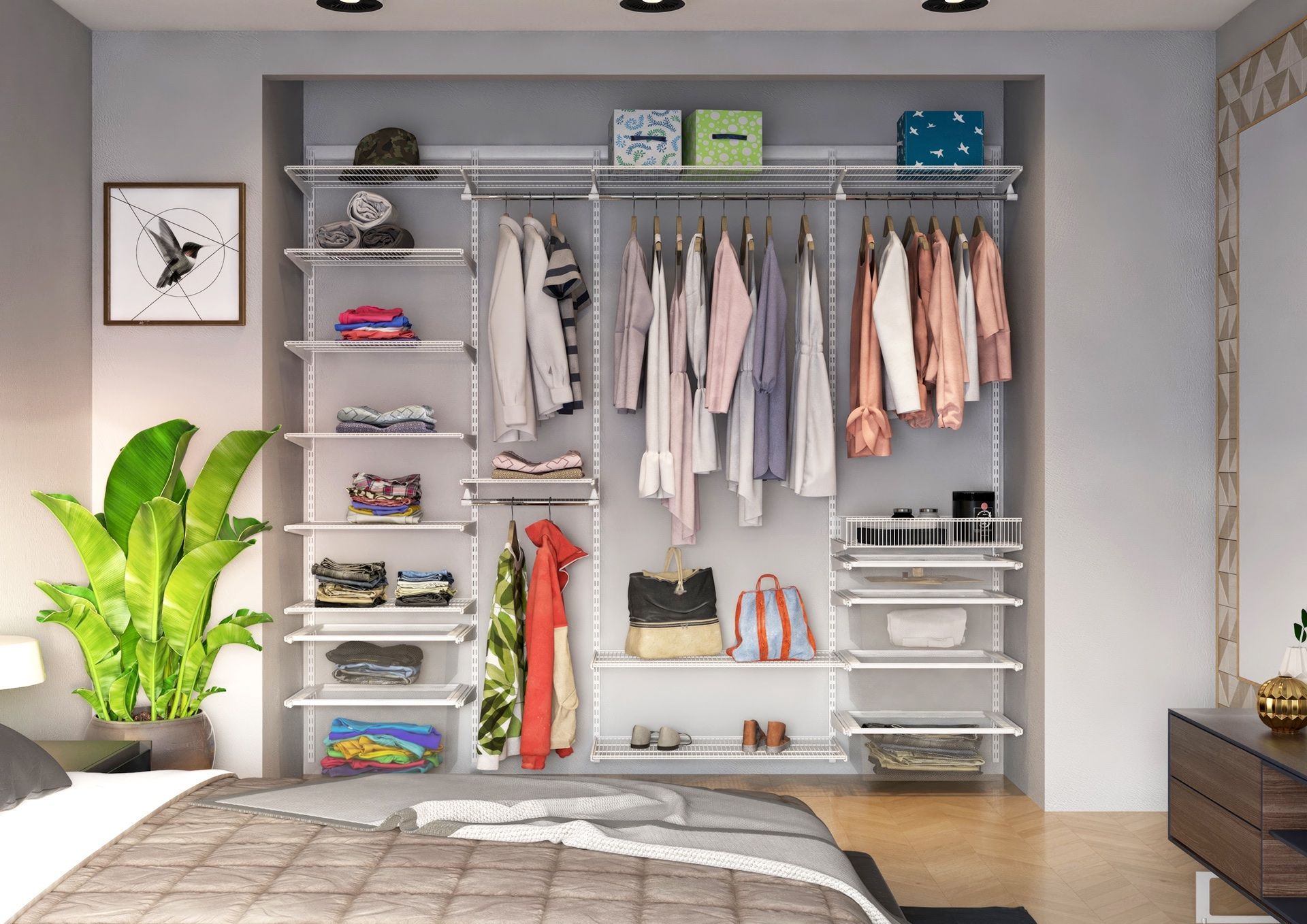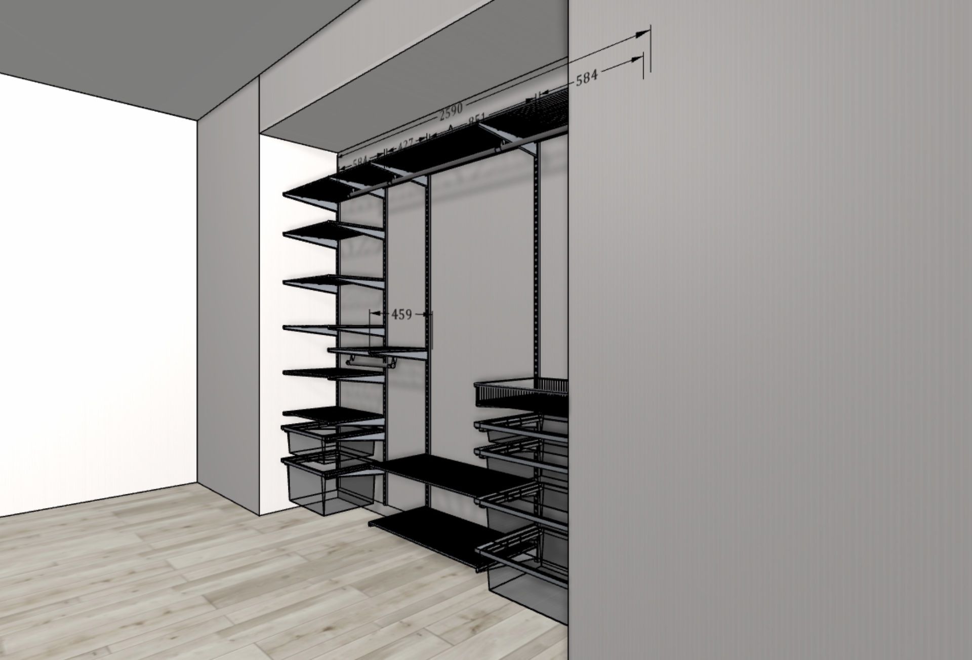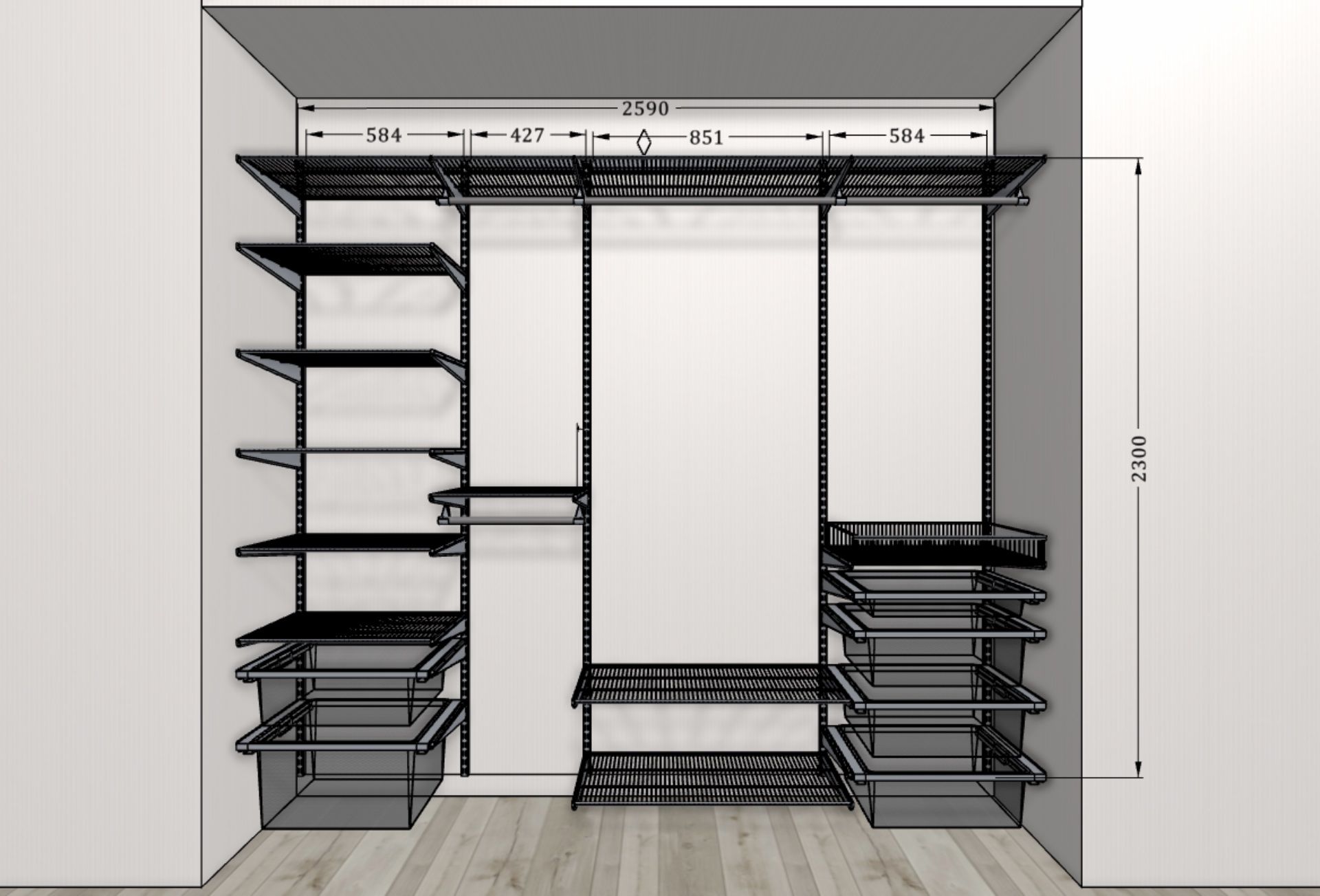 Проект гардеробной в спальне при наличии ниши очень удобно осуществляется с помощью системы хранения ARISTO. Ниша любого размера оптимально заполняется элементами гардеробной системы хранения: проволочные полки различной длины и глубины, выдвижные сетчатые корзины, полки-корзины с разделителями, штанги для одежды – все эти элементы располагаются в удобном для Вас порядке, легко меняются или переставляются.