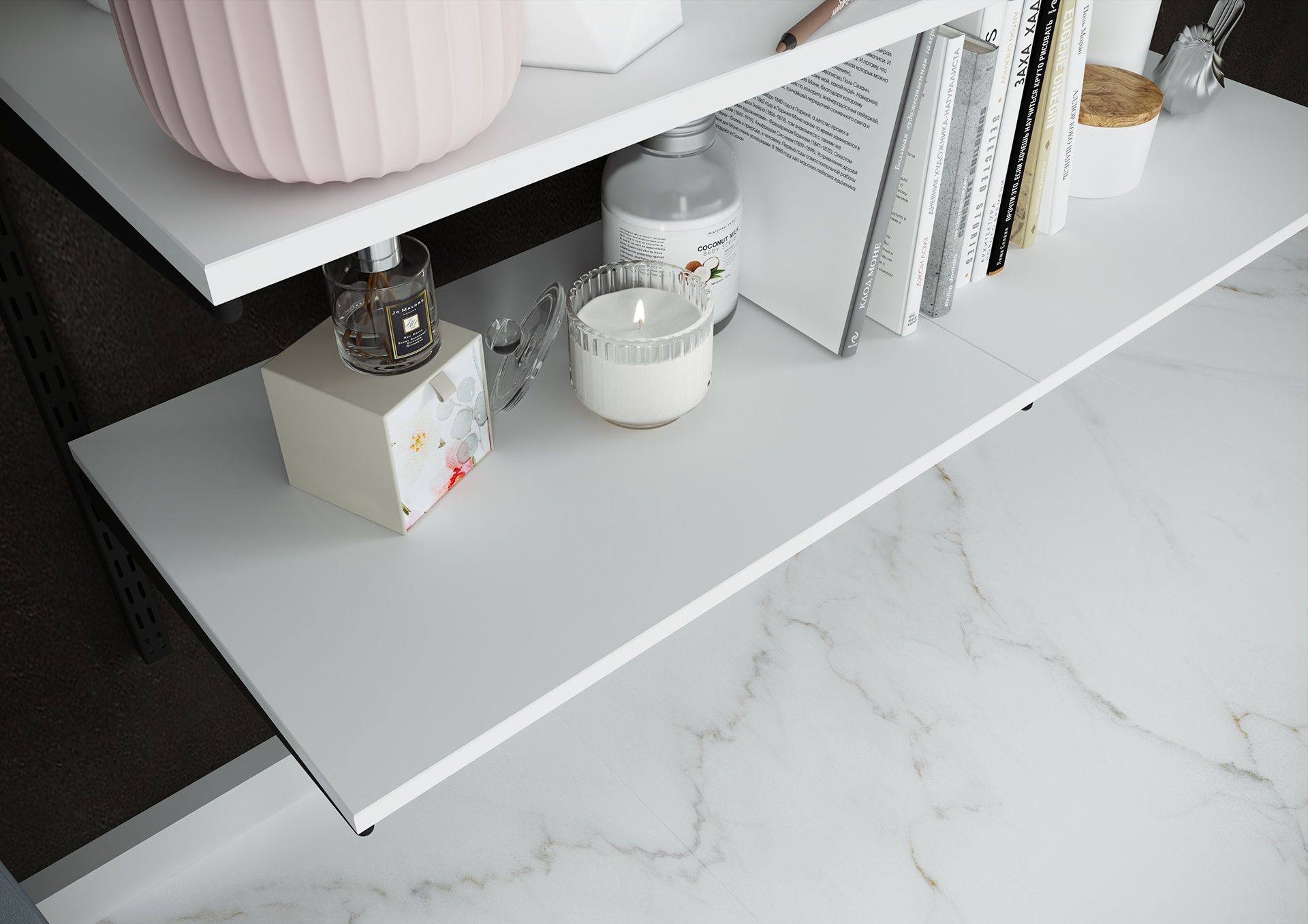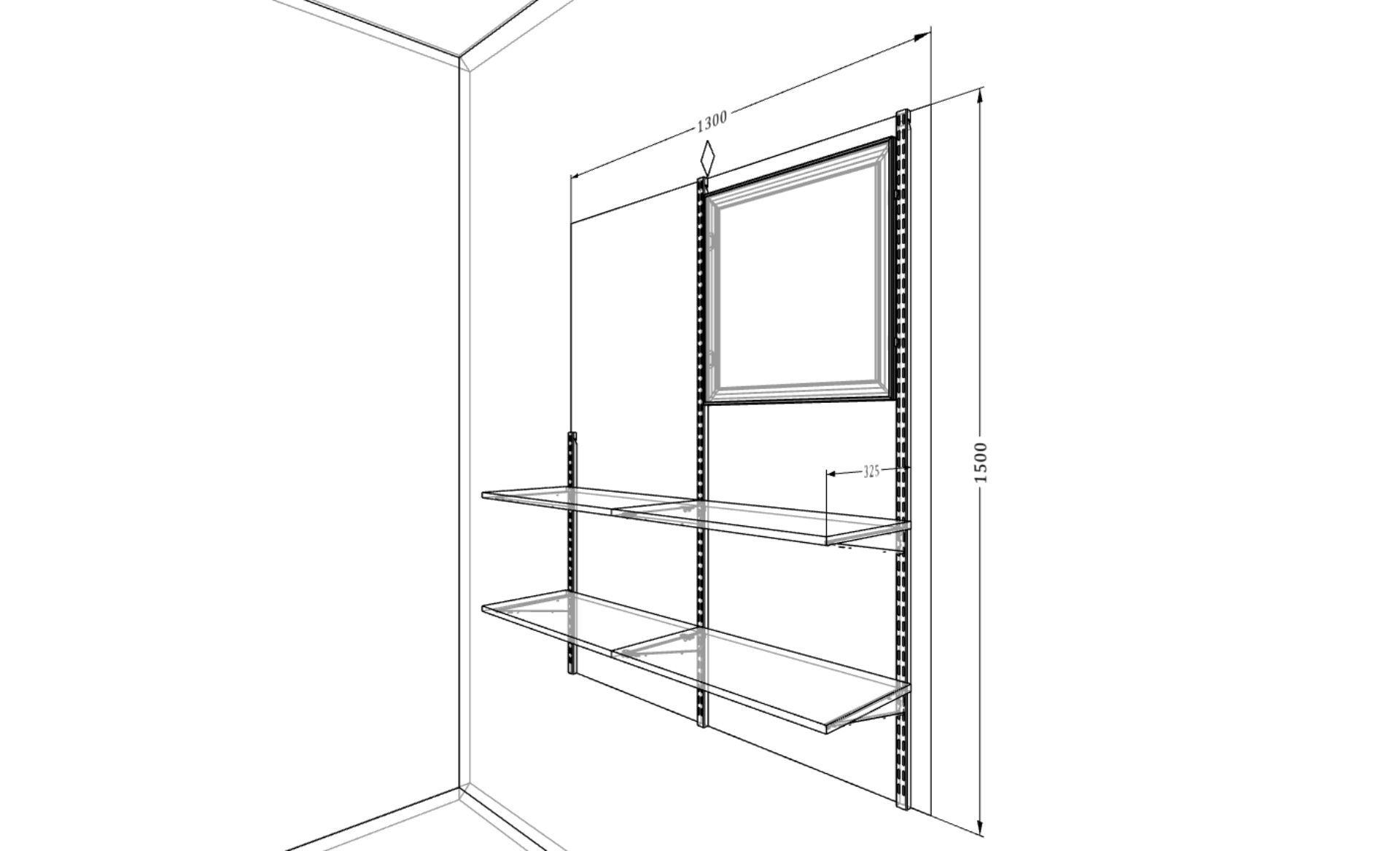 Крепеж подбирается под материал стены на месте монтажа, что позволяет избежать лишнего мусора и пыли. Установить полки Гардеробной системы можно также и в корпусный шкаф.