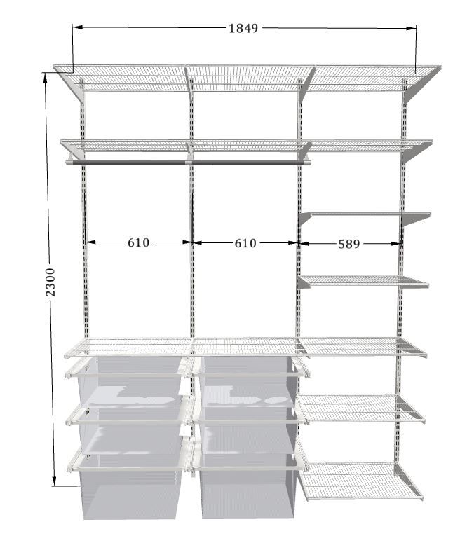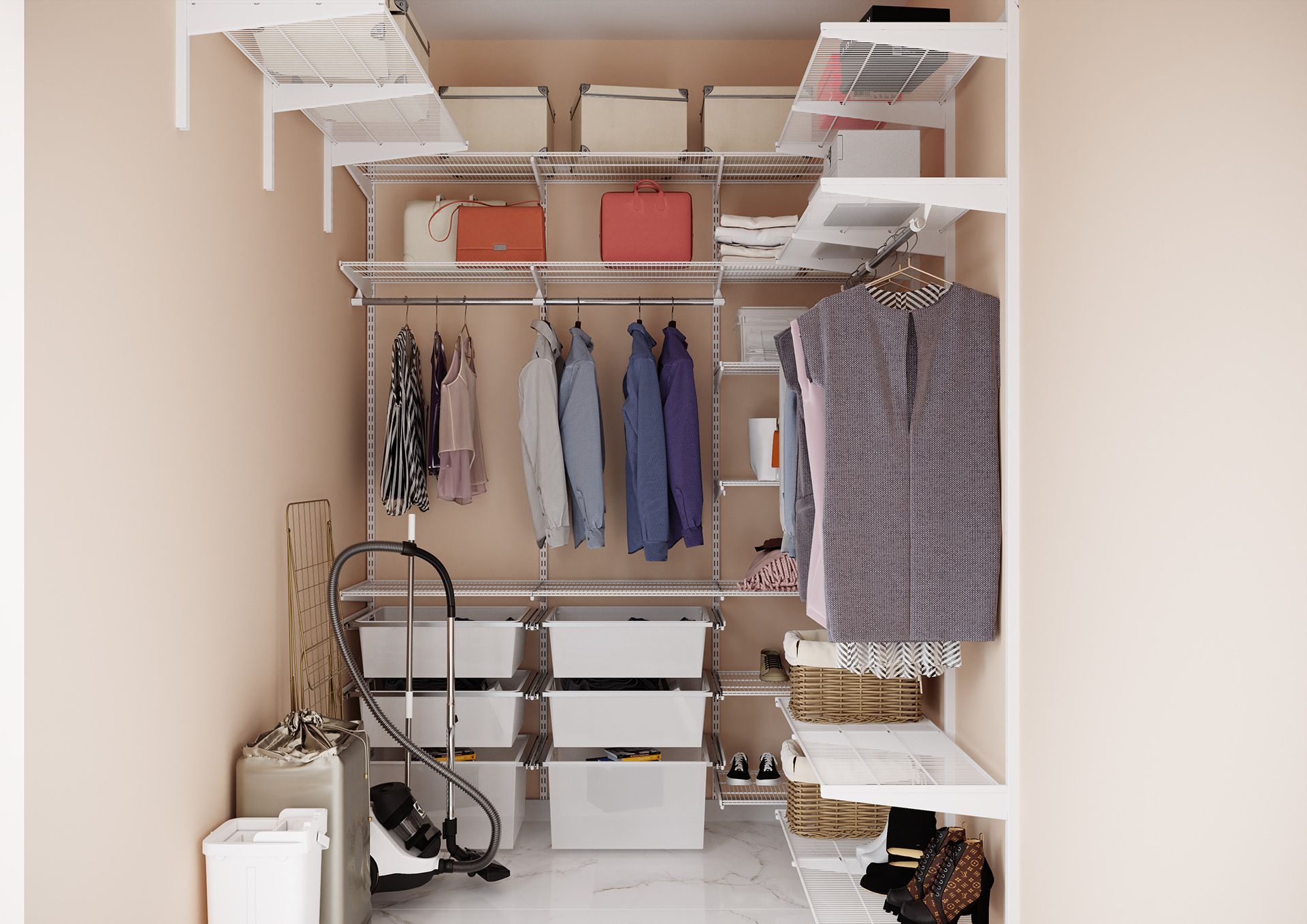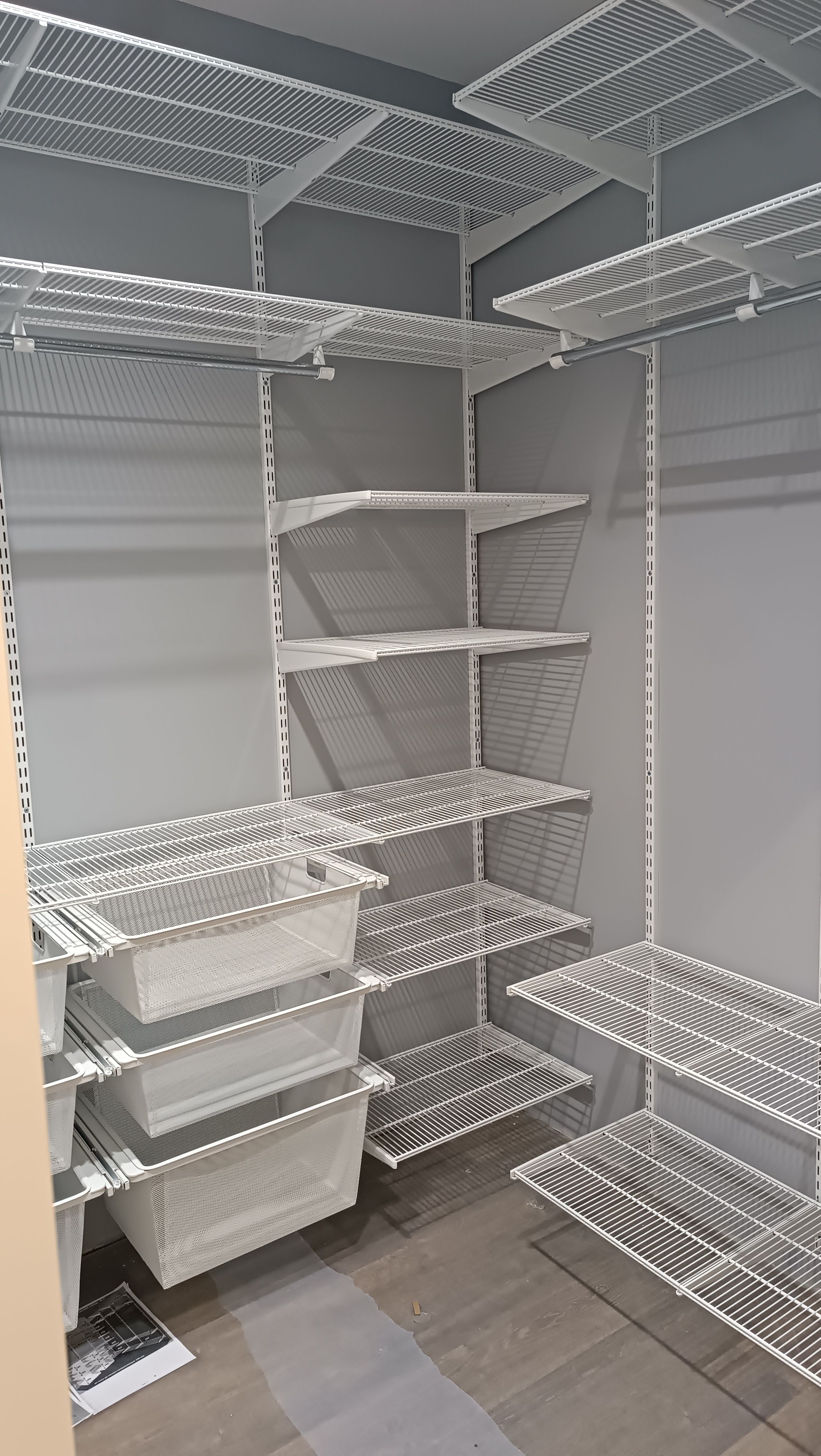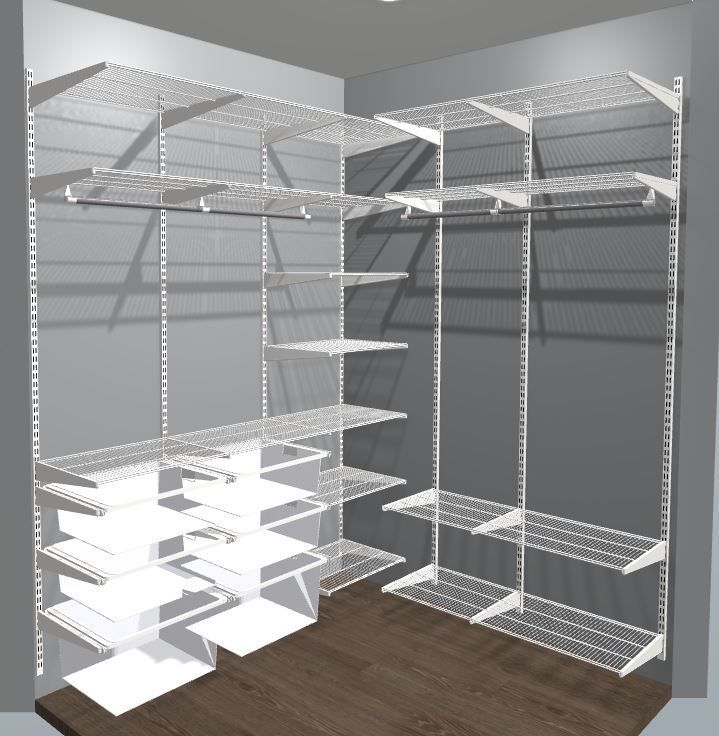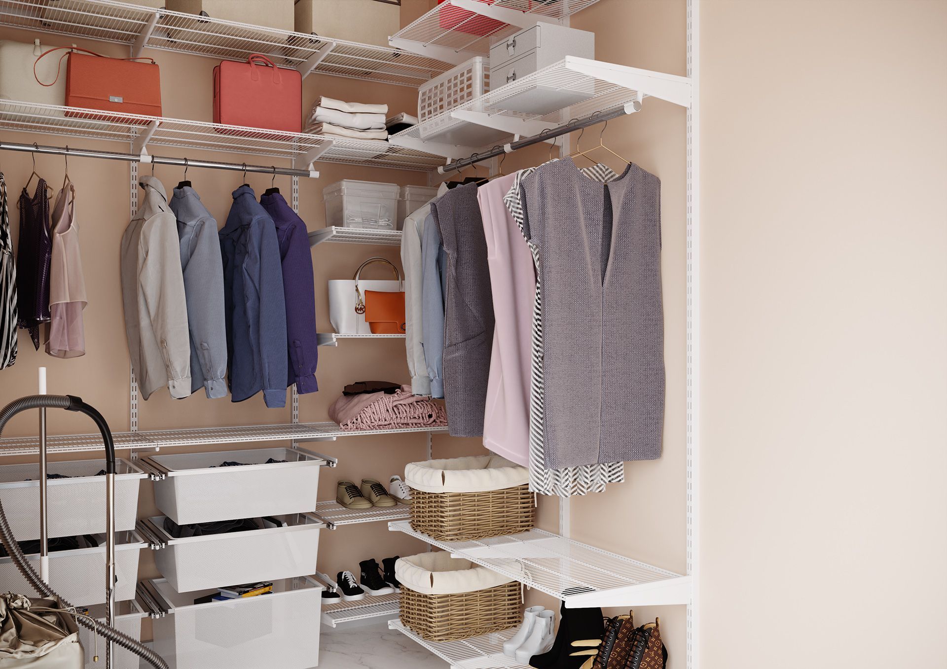 Для проекта гардеробной вы сами выбираете нужные вам элементы! Вариативность и ассортимент позволяют подогнать систему под ее хозяина: от количества и типа полок, до высоты их расположения в зависимости от роста человека. Элементы можно менять местами или докупать новые – создайте хранение удобное именно вам!
