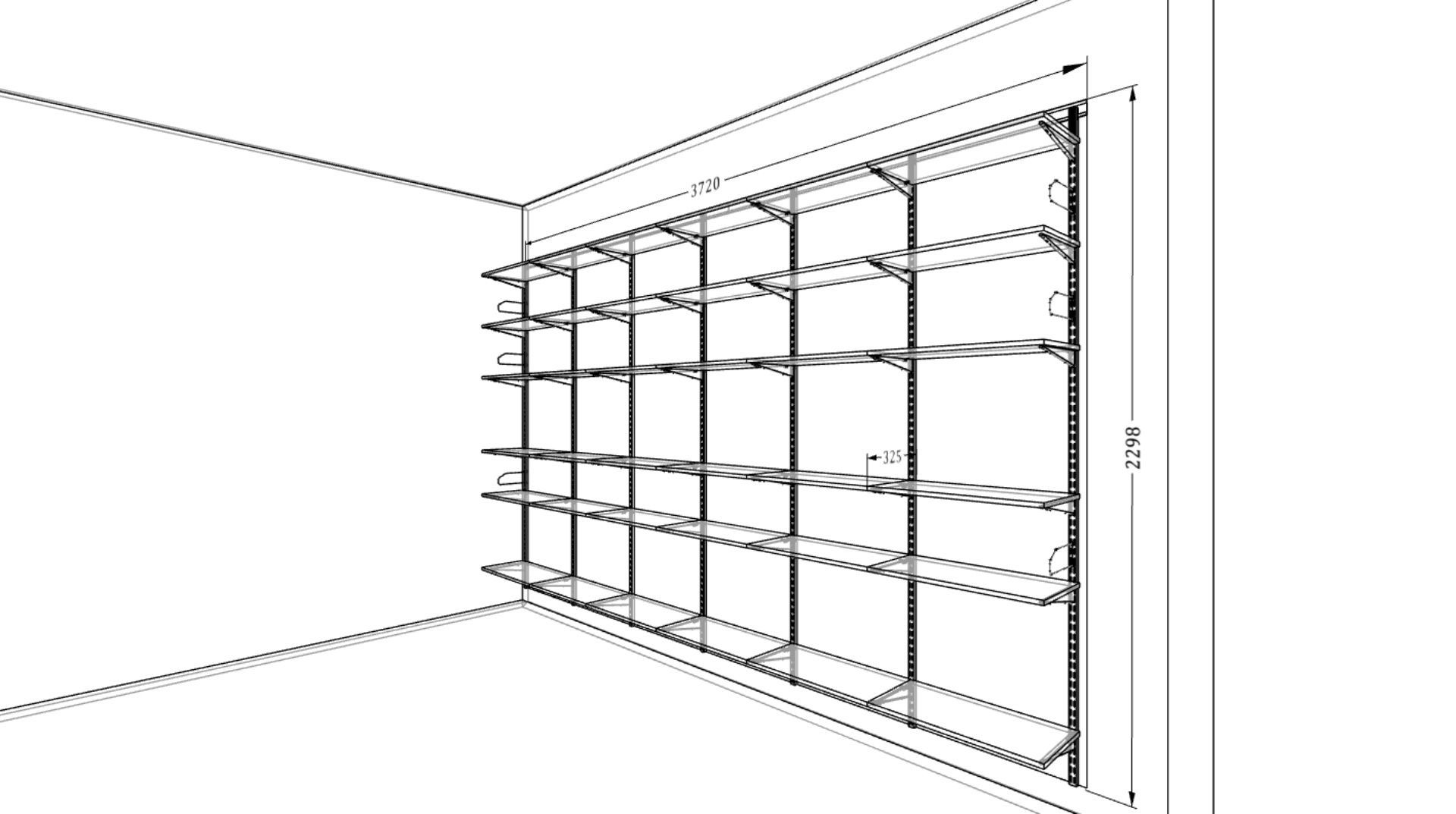 Полки выполнены из ЛДСП Egger (16 мм) в цвете Белый Премиум. Длина полок: 600 мм.