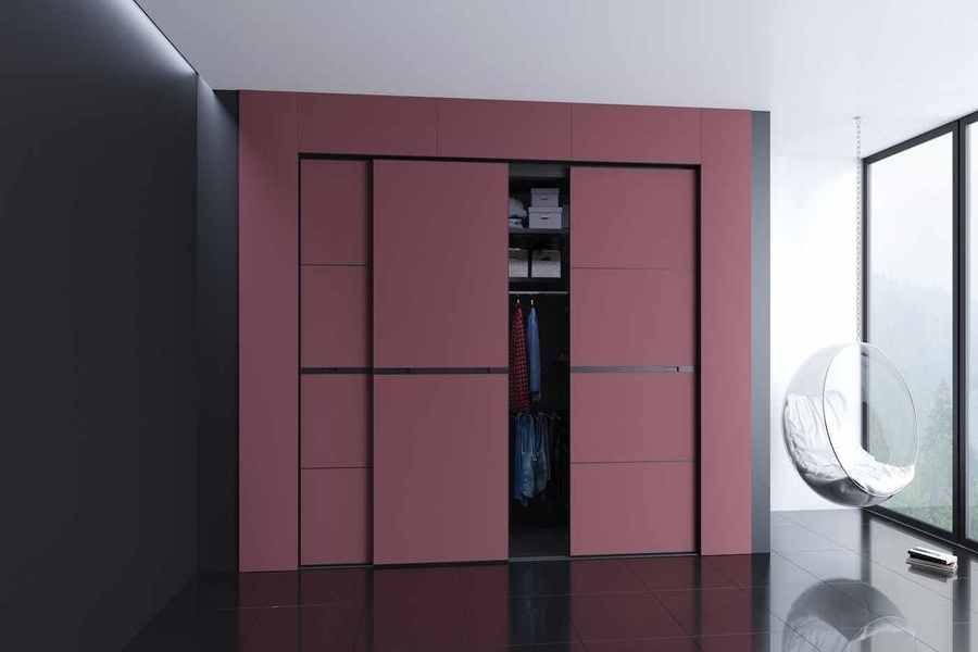 Тонкие линии профиля толщиной 5 мм создают деликатное обрамление, уступая внимание материалам коллекции. Черный матовый металл подчеркивает геометрию и является важным стилистическим дополнением. Скрытая верхняя направляющая стирает границы — двери становятся плавным продолжением стен, а при использовании декоративных панелей в отделке растворяются в них. Двери NOVA обладают визуальной легкостью, в пространстве оставляют место воздуху и простору. Они будут актуальны в абсолютно разных помещениях: от прихожей до кабинета.